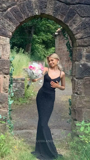 Luolandi Elegant Mermaid V-neck Sleeveless Party Evening Gown Black Long Formal Prom Dress Sexy Graduation Dress