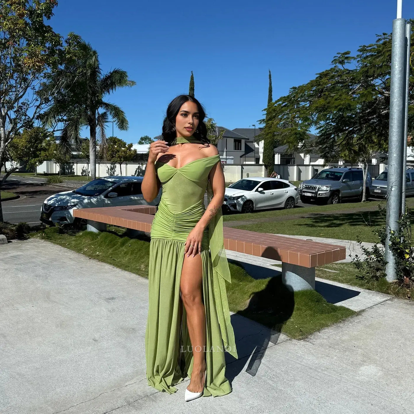 Luolandi Elegant Off the Shoulder Long Formal Prom Dress With Slit Charming Party Evening Gowns Sexy Wedding Guest Dress
