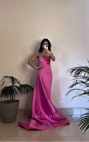 Luolandi Elegant Sheath Strapless Sleeveless Long Formal Prom Dress Sweet Wedding Guest Dress Charming Party Evening Gowns