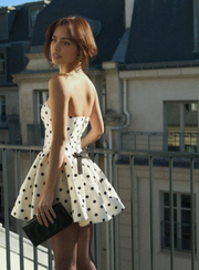Luolandi Cute A Line Strapless Polka Dots Short Prom Dress Charming Homecoming Dress Lovely Graduation Dress Sweetheart Birthday Party Dress