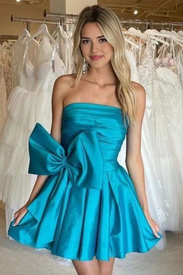Lovely A-Line Strapless Short Prom Dress With Bow Charming Homecoming Dress Sweetheart Graduation Dress Chic Birthday Party Dress