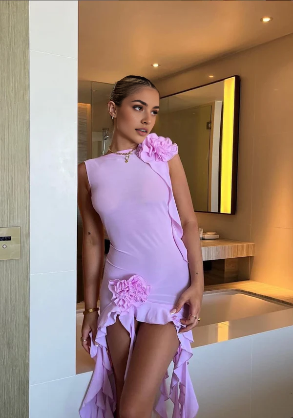 Sheath 3D Flower Ruffles Prom Dress Charming Homecoming Dress Lovely Graduation Dress Sweetheart Birthday Party Dress
