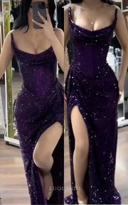 Luolandi Charming Mermaid Strapless Sleeveless Long Formal Prom Dress with Split Sparkly Party Evening Gowns Sexy Black Girls Graduation Dress - US 2 / UK 6 / EU 32