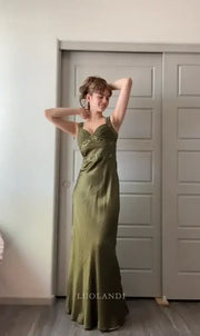 Luolandi Charming Sleeveless Satin Beaded Long Formal Prom Dress Elegant Evening Party Dress