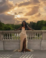 Luolandi Elegant Formal Wear Dress Sleeveless Long Prom Dress With Slit Charming Evening Dress Sexy Black Girl Party Dress