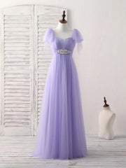 Purple Sweetheart Neck Tulle Long Prom Dress Bridesmaid Dress With Beading