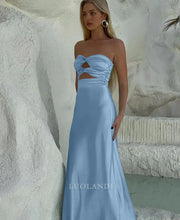 Luolandi Elegant Strapless Sleeveless Satin Long Formal Prom Dress Charming Party Evening Gowns Sexy Graduation Dress Maxi Dress For Girls - Sky Blue / US 2 / UK 6 / EU 32