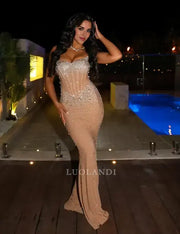 Luolandi Charming Mermaid Strapless Sleeveless Long Formal Prom Dress Sexy Evening Party Gowns Fashion Wedding Guest Dress for Women