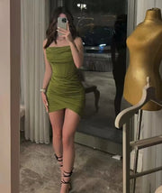 Luolandi Green Strapless Sheath Mini Party Dress Homecoming Dress Off Shoulder Formal Dress