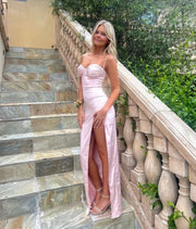 Luolandi Sweetheart Sheath Spaghetti Straps Satin Formal Prom Dress With Slit Lovely Graduation Dress Long Party Evening Gowns