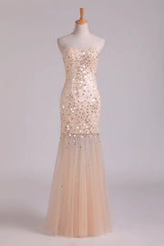 Sweetheart Floor Length Party Dresses Mermaid Tulle With Beading